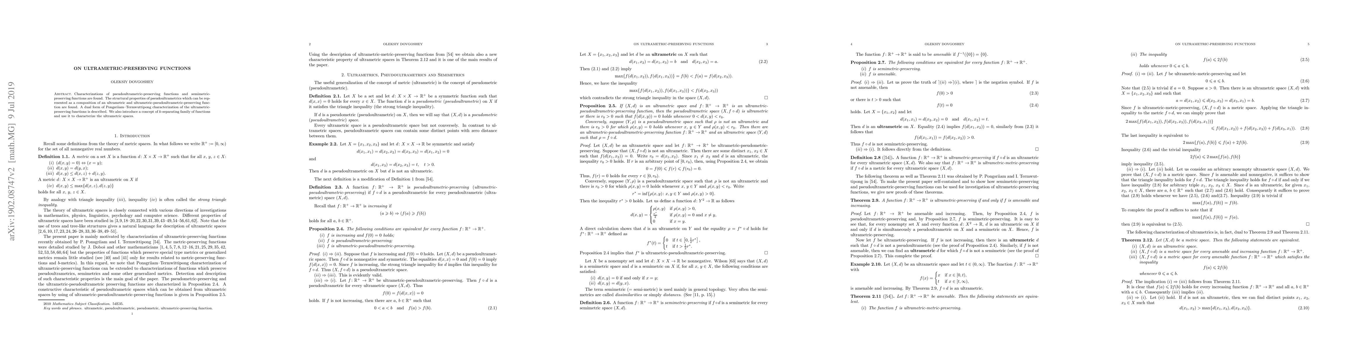 This paper characterizes pseudoultrametric-preserving and semimetric-preserving functions, explores the structural properties of pseudoultrametrics, and introduces a $k$-separating family of functions to characterize ultrametric spaces. It also presents a dual form of the Pongsriiam-Termwuttipong characterization of ultrametric-preserving functions.