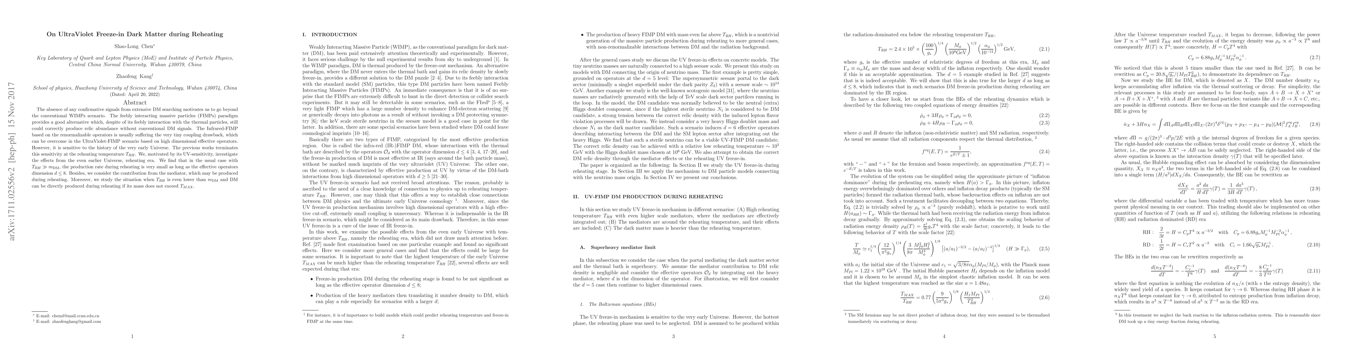 Researchers investigate UltraViolet Freeze-in Dark Matter during Reheating, finding that its production rate is small unless the mass of dark matter does not exceed a certain threshold, which could allow for direct detection during reheating.