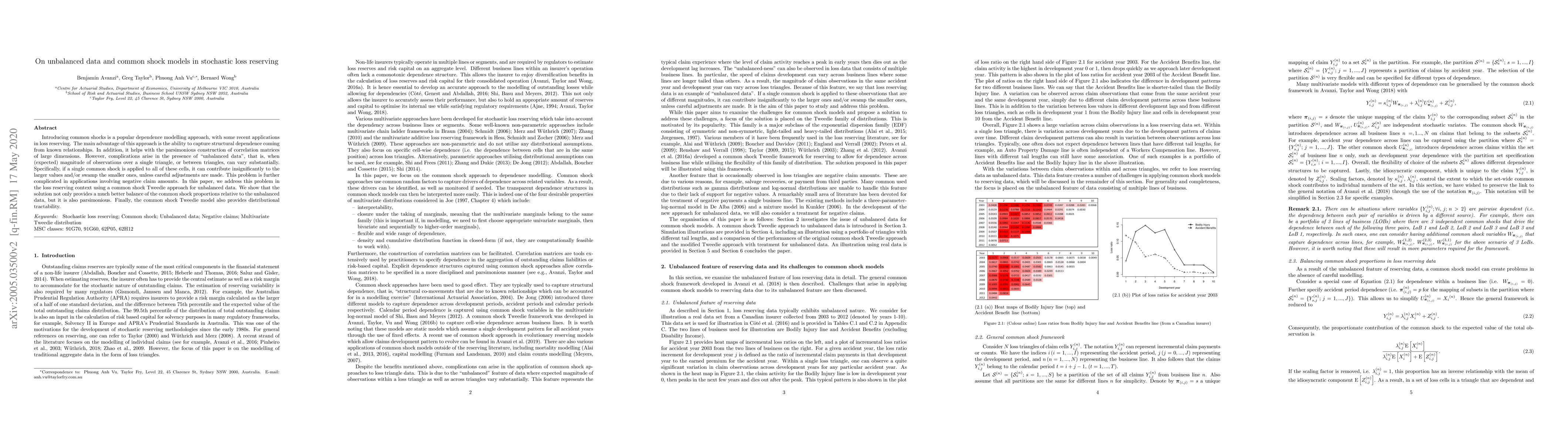 This paper introduces a common shock Tweedie approach to tackle the issue of unbalanced data in loss reserving, ensuring better proportion balance of common shocks relative to the data. It offers distributional tractability and parsimonious construction of correlation matrices for large dimensions.
