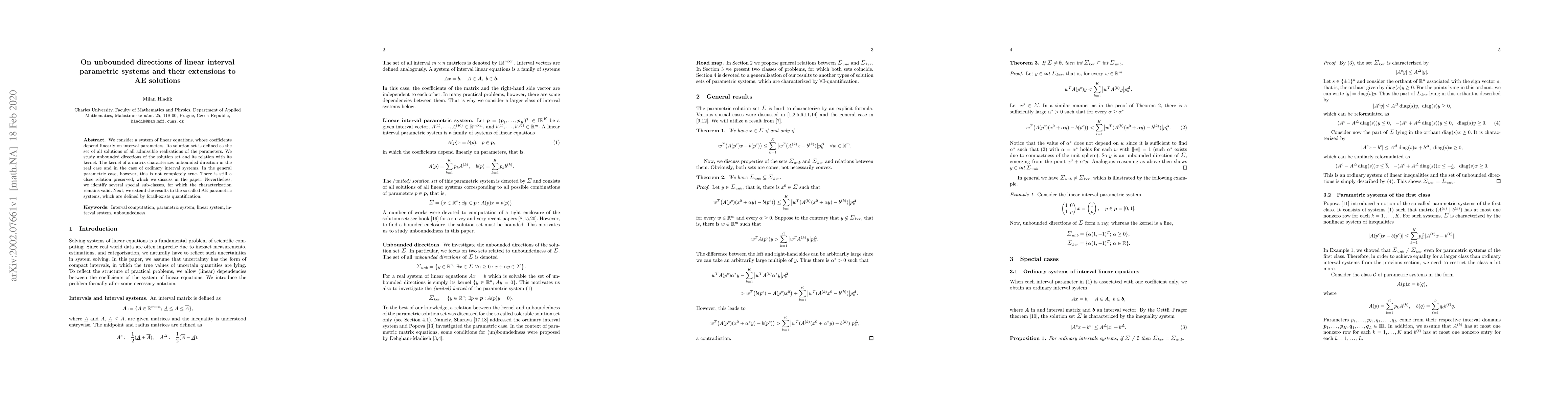 This paper studies unbounded directions of solution sets for linear interval parametric systems and their extensions to AE solutions, focusing on the relationship between kernel matrices and unbounded directions.