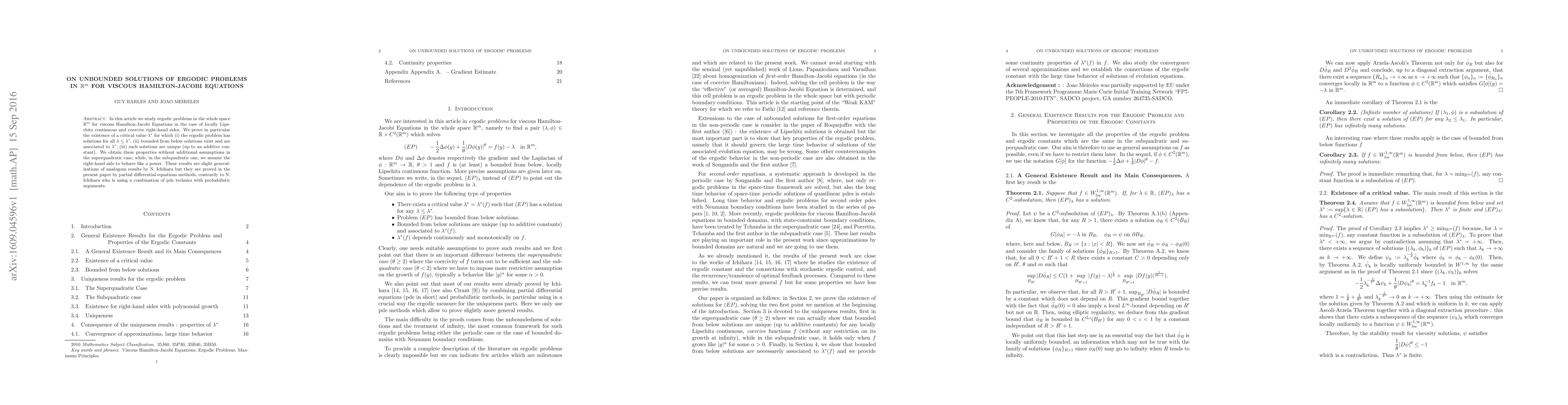 This paper investigates ergodic problems for viscous Hamilton-Jacobi equations in R^m, proving the existence of a critical value λ* where solutions exist and are bounded below, unique up to an additive constant, without additional assumptions in the superquadratic case. The results generalize previous findings by N. Ichihara, using PDE methods instead of probabilistic arguments.