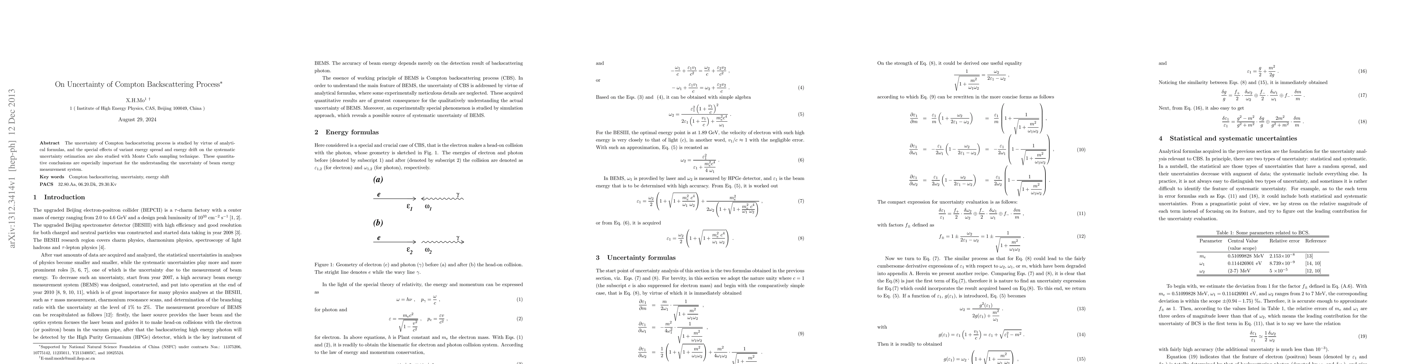 The uncertainty of Compton backscattering process is studied by virtue of analytical formulas, and the special effects of variant energy spread and energy drift on the systematic uncertainty estimation are also studied with Monte Carlo sampling technique. These quantitative conclusions are especially important for the understanding the uncertainty of beam energy measurement system.