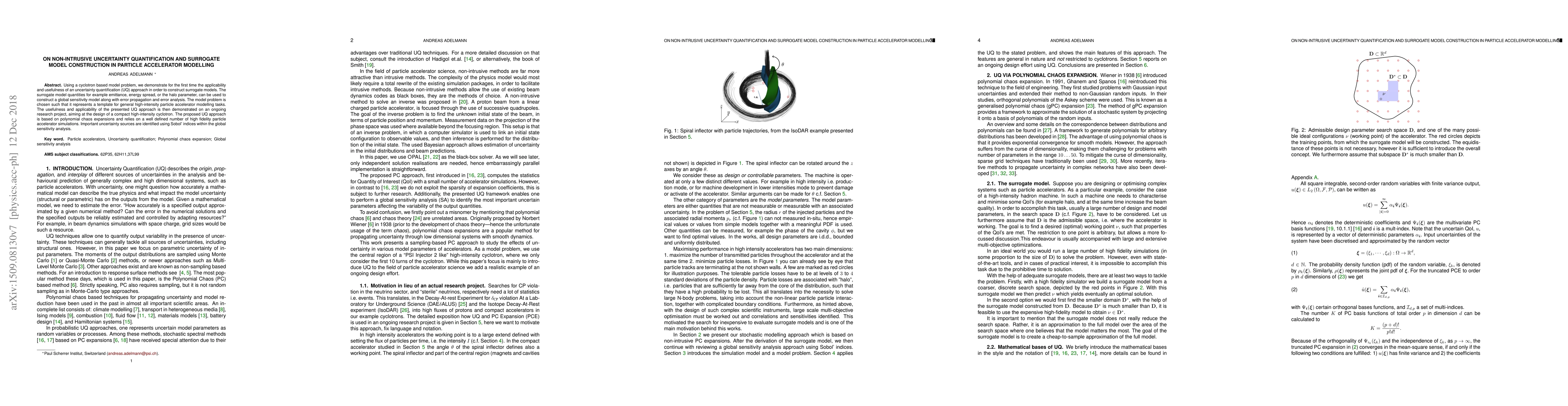 This paper introduces an uncertainty quantification (UQ) approach using sparse polynomial chaos expansions to construct surrogate models for key parameters in particle accelerators, including emittance and energy spread. The method identifies significant uncertainty sources through a global sensitivity analysis, demonstrating its utility in high-intensity accelerator modeling.