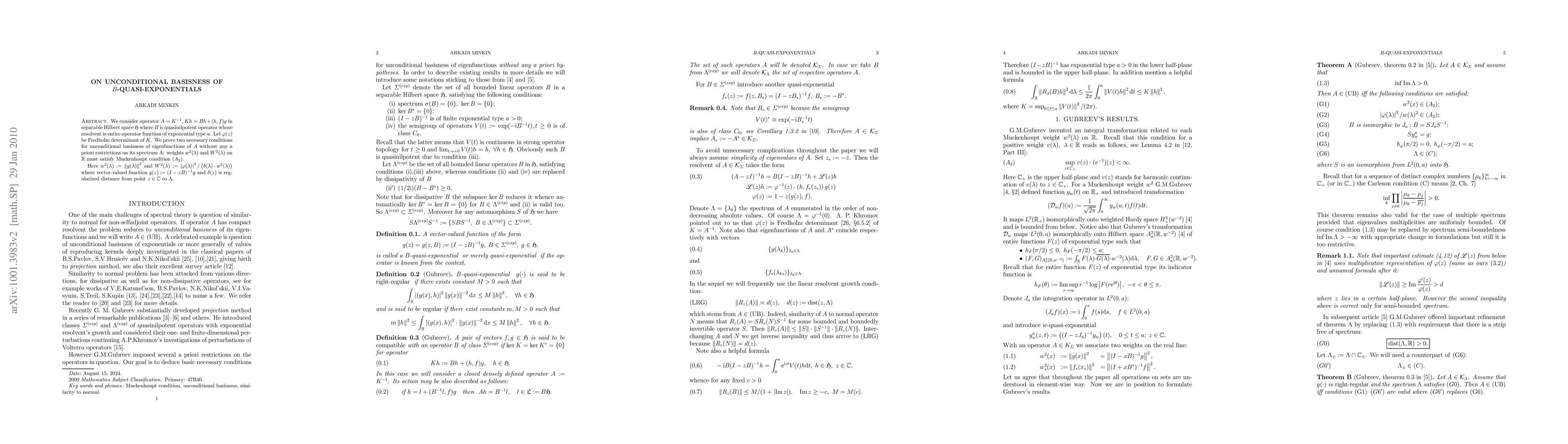 This paper investigates the unconditional basisness of eigenfunctions for a perturbed quasinilpotent operator, establishing the necessity of the Muckenhoupt condition (A2) for two weights related to the operator, without imposing any prior restrictions on its spectrum.