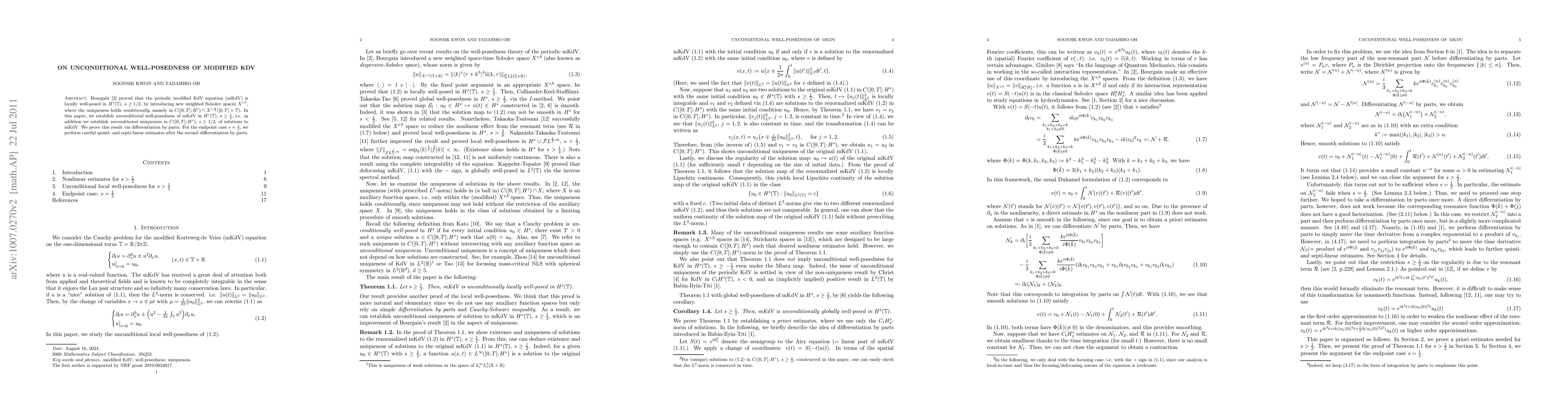 This paper proves unconditional well-posedness of the modified KdV equation in H^s space for s >= 1/2, establishing both local and global uniqueness of solutions.