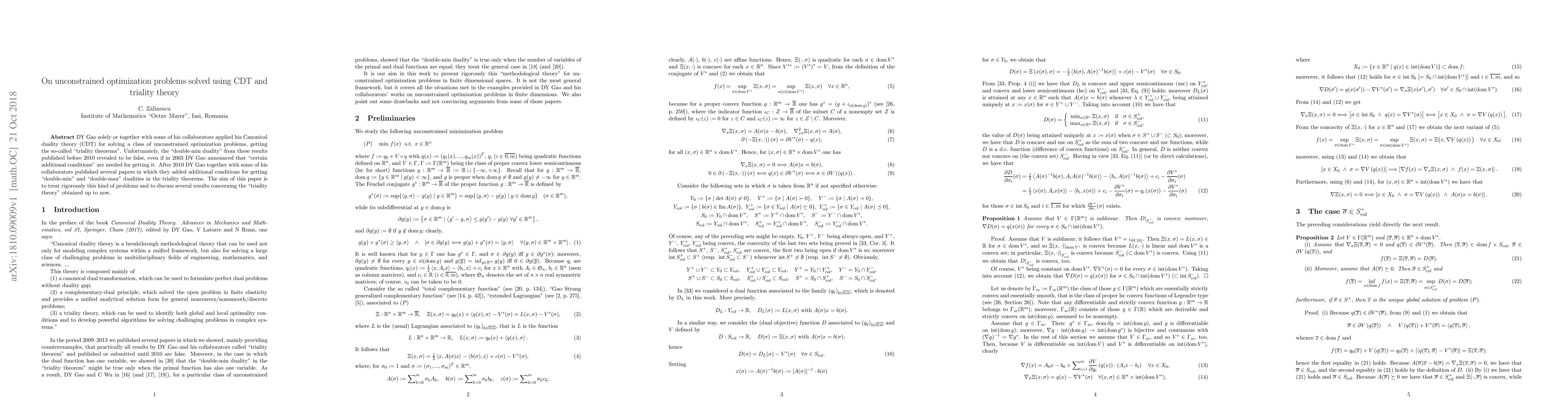 This paper rigorously examines CDT and triality theory for solving unconstrained optimization problems, building on previous research that added conditions to obtain 'double-min' and 'double-max' dualities.