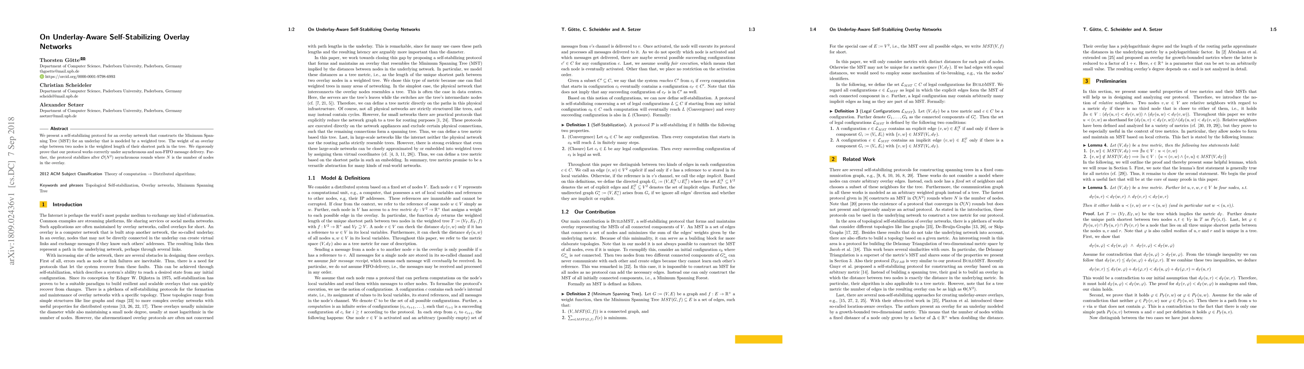 This paper introduces a self-stabilizing protocol for overlay networks that constructs a Minimum Spanning Tree based on the shortest paths in an underlying weighted tree, proving its correctness under asynchronous and non-FIFO message delivery, and demonstrating stabilization in $\mathcal{O}(N^2)$ rounds.