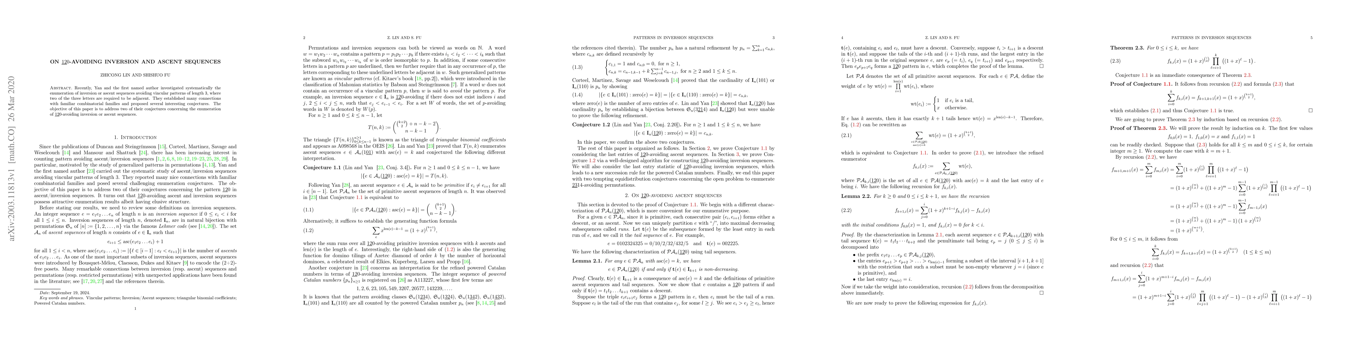 The paper uses recursive algorithms and induction to prove theorems concerning 120-avoiding inversion sequences, building upon previous work by Yan and the first author.