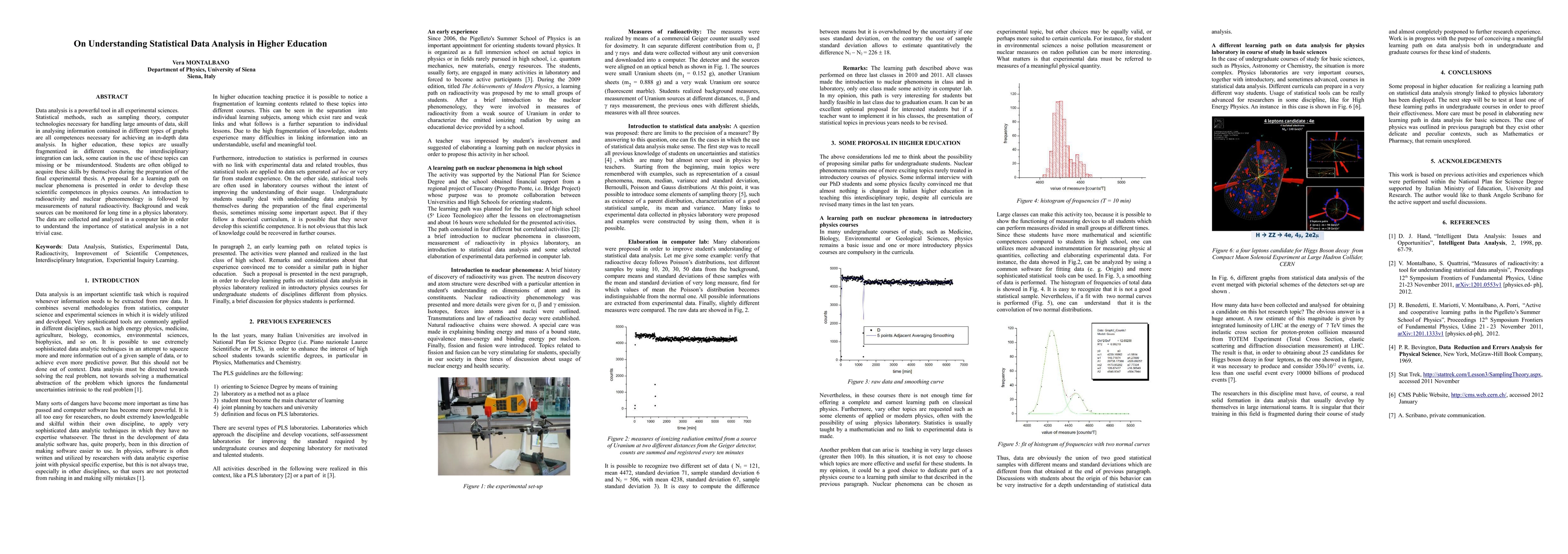 This paper discusses the importance of integrating statistical data analysis skills in higher education, highlighting the fragmented approach in current curricula. It proposes a learning path in physics courses, using nuclear phenomena and radioactivity measurements, to better develop these competencies through practical, interdisciplinary experiences.