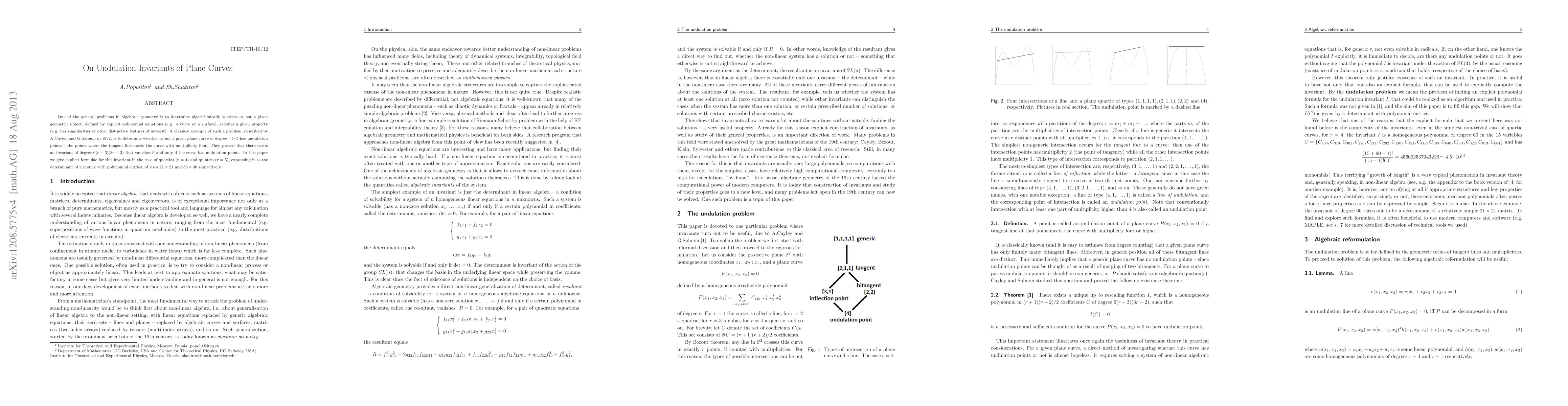 Researchers have found explicit formulae for an invariant that determines whether a plane curve has undulation points, expressed as the determinant of a matrix with polynomial entries.