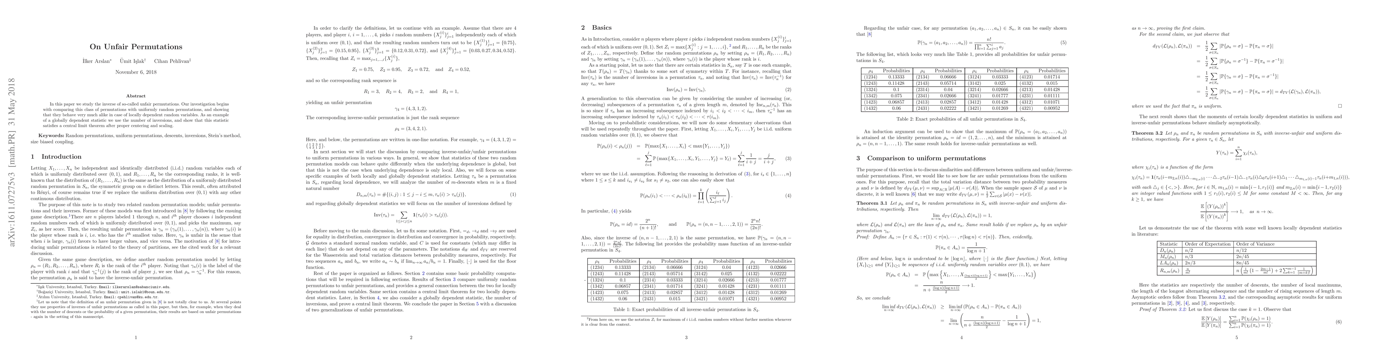 This paper explores properties of unfair permutations, comparing them to random permutations and studying their behavior with statistics like inversions and fixed points. It also introduces generalizations and applies central limit theorems to certain statistics.