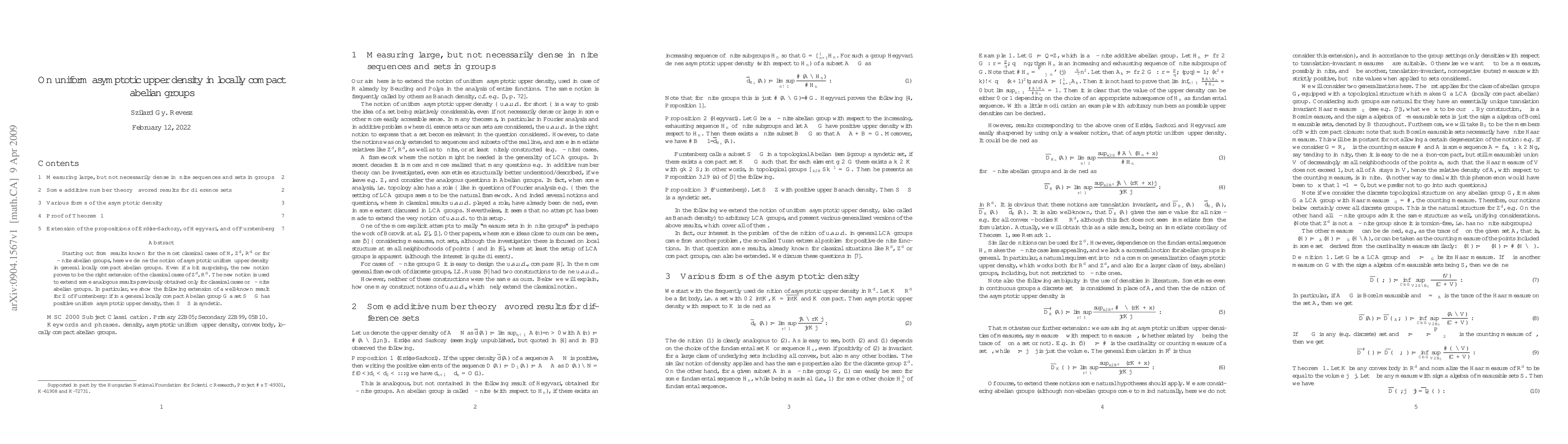 This paper introduces the concept of asymptotic uniform upper density in locally compact abelian groups, extending classical results from Z^d and R^d. It proves that this new notion generalizes the classical cases and uses it to extend analogous results, showing that in any locally compact Abelian group, a subset with positive uniform asymptotic upper density implies that its difference set S-S is syndetic.