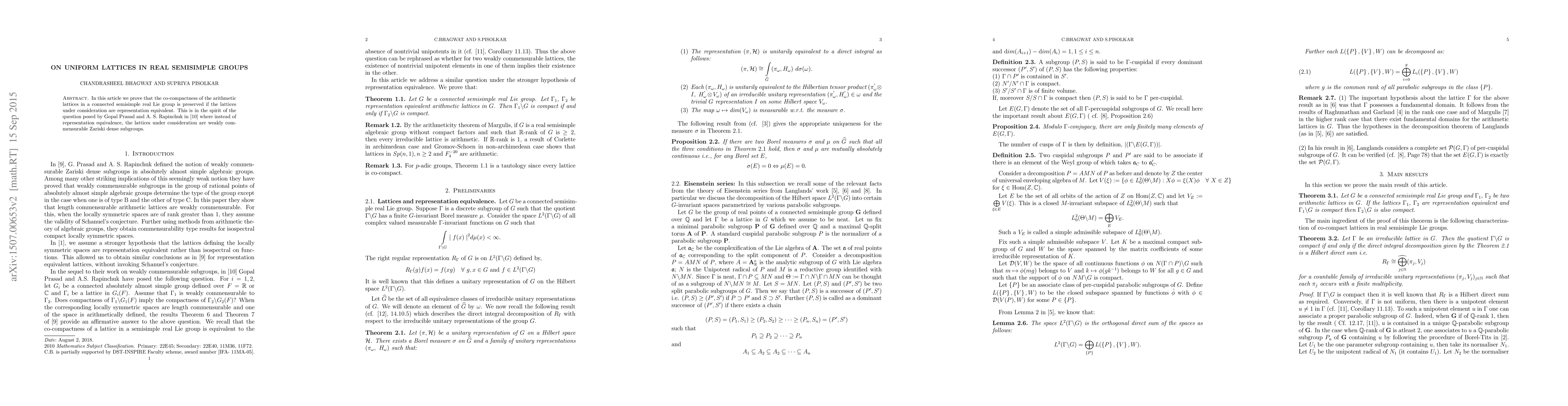 This paper proves that co-compact arithmetic lattices in connected semisimple real Lie groups retain their co-compactness when representation equivalent, echoing the question posed by Prasad and Rapinchuk regarding weakly commensurable, Zariski dense subgroups.