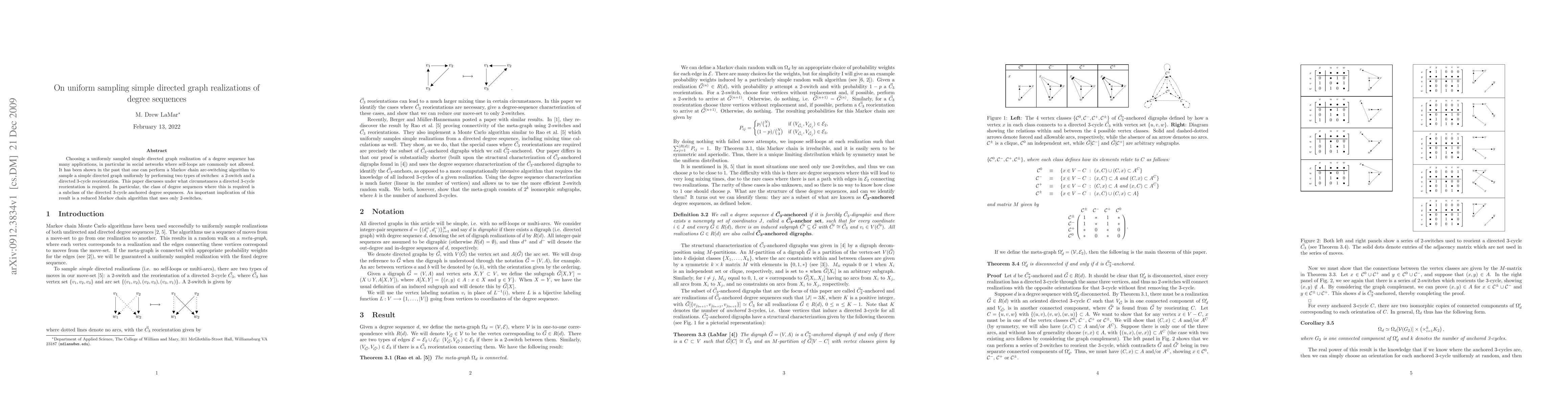 Choosing a uniformly sampled simple directed graph realization of a degree sequence has many applications, in particular in social networks where self-loops are commonly not allowed. It has been shown in the past that one can perform a Markov chain arc-switching algorithm to sample a simple directed graph uniformly by performing two types of switches: a 2-switch and a directed 3-cycle reorientation. This paper discusses under what circumstances a directed 3-cycle reorientation is required. In particular, the class of degree sequences where this is required is a subclass of the directed 3-cycle anchored degree sequences. An important implication of this result is a reduced Markov chain algorithm that uses only 2-switches.