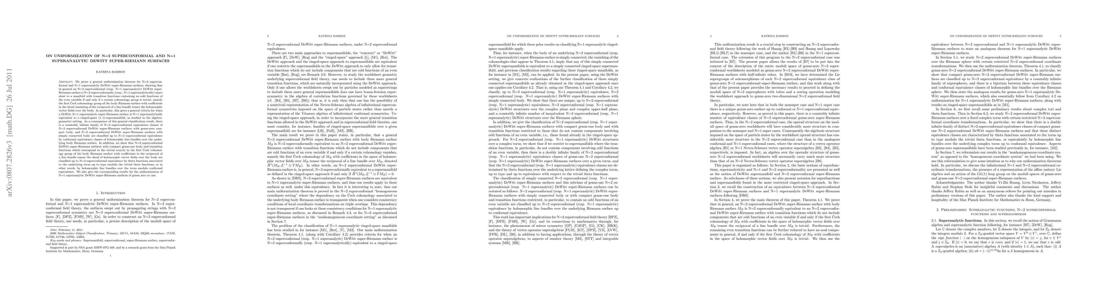 This paper proves a uniformization theorem for N=2 superconformal and N=1 superanalytic DeWitt super-Riemann surfaces, establishing criteria for their equivalence based on the triviality of a specific cohomology group, and classifies these surfaces up to equivalence, revealing a countably infinite family of N=2 superconformal classes and specific classifications for genus-zero and genus-one cases.
