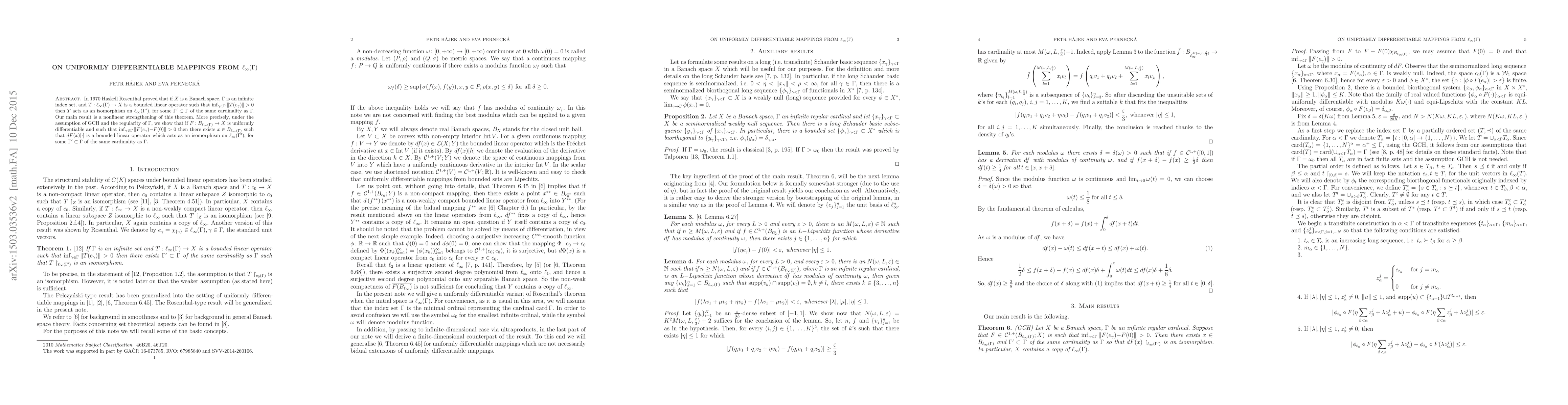 This paper strengthens a theorem by Rosenthal on bounded linear operators by extending it to uniformly differentiable nonlinear mappings. Under the Generalized Continuum Hypothesis and regularity of $\Gamma$, it shows the existence of an isomorphism for a uniformly differentiable function on $\ell_\infty(\Gamma)$.