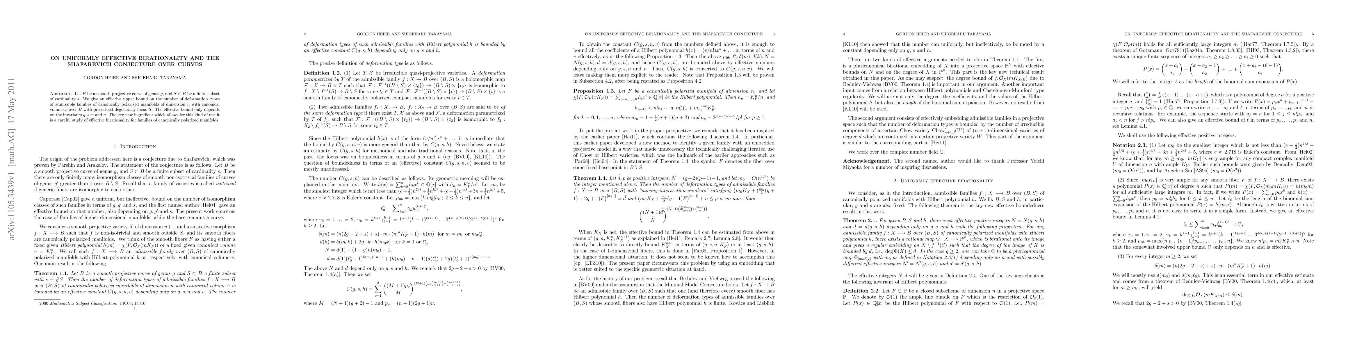 Let $B$ be a smooth projective curve of genus $g$, and $S \subset B$ be a finite subset of cardinality $s$. We give an effective upper bound on the number of deformation types of admissible families of canonically polarized manifolds of dimension $n$ with canonical volume $v$ over $B$ with prescribed degeneracy locus $S$. The effective bound only depends on the invariants $g, s, n$ and $v$. The key new ingredient which allows for this kind of result is a careful study of effective birationality for families of canonically polarized manifolds.