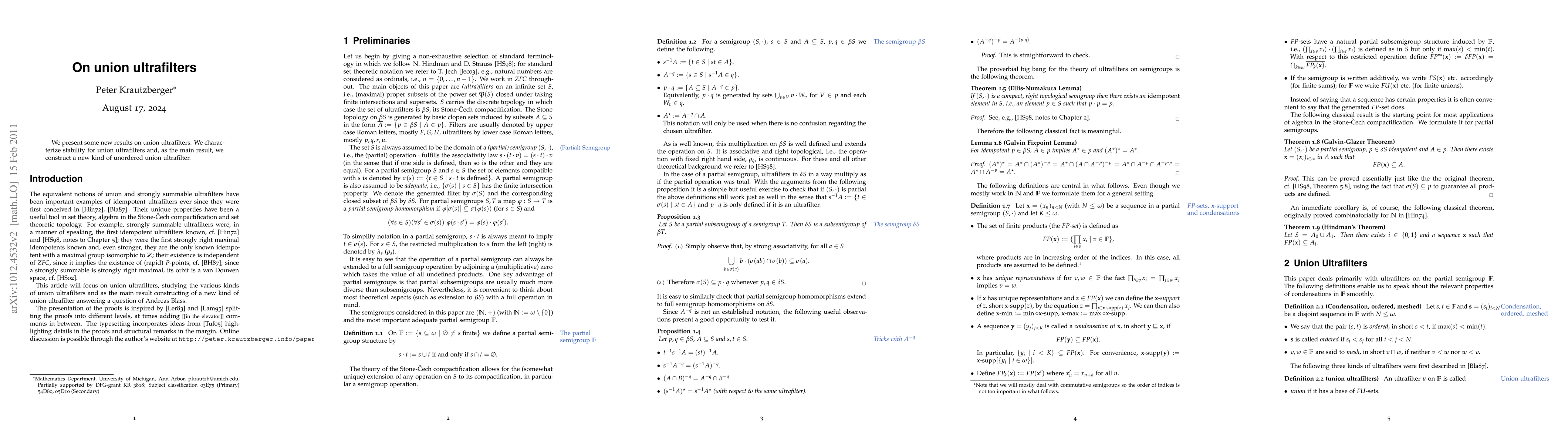 Summary: This paper introduces new findings on union ultrafilters, focusing on characterizing stability and presenting a construction of a novel unordered union ultrafilter as a significant outcome.