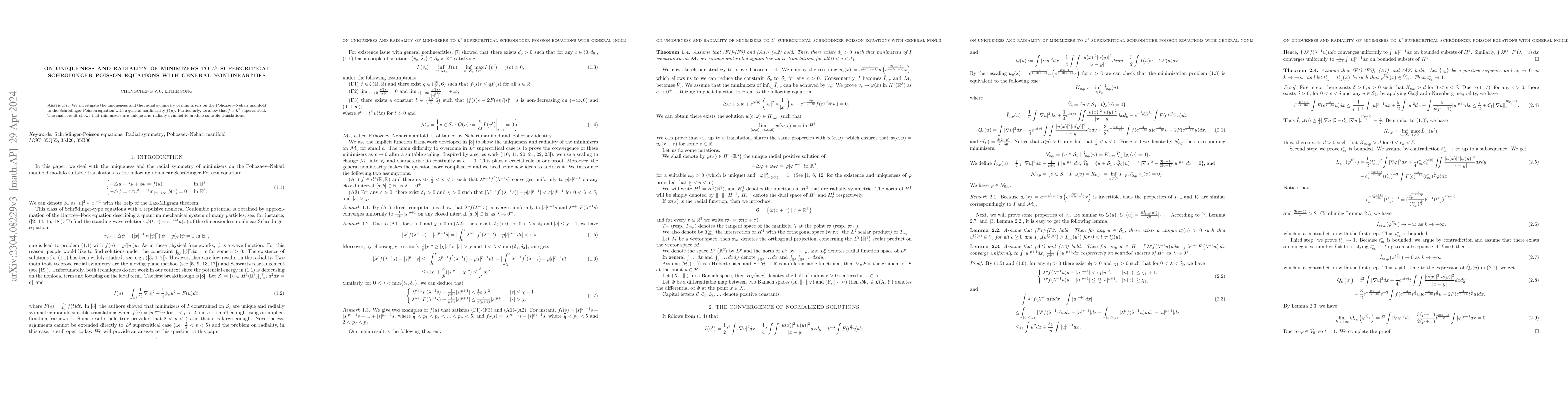 This paper investigates the uniqueness and radial symmetry of minimizers to $L^2$ supercritical Schrödinger Poisson equations with general nonlinearities. The main finding is that minimizers are unique and radially symmetric, up to appropriate translations.