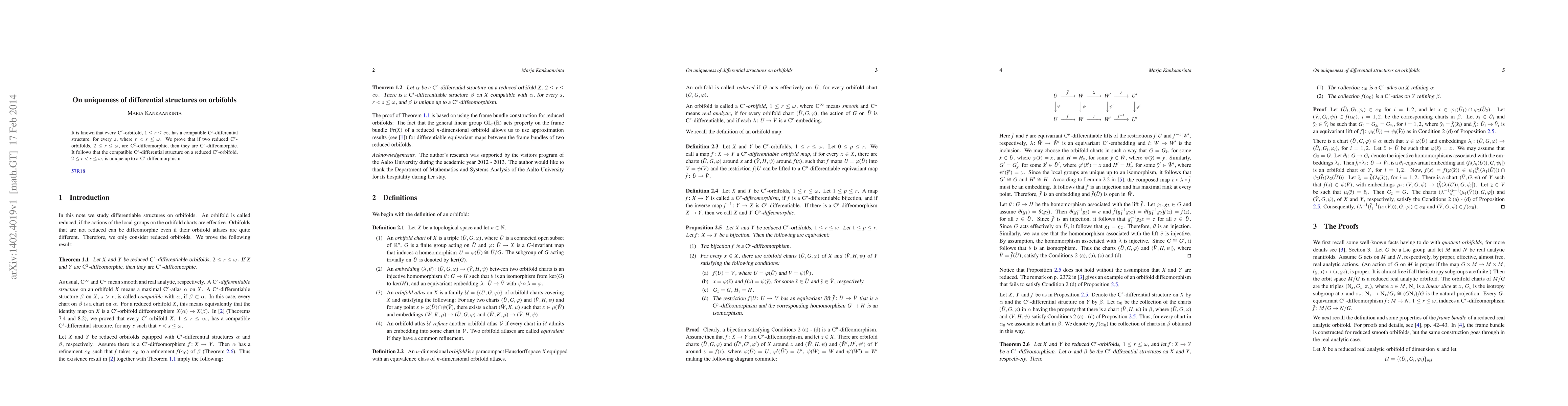 s\leq\omega$. We prove that if two reduced ${\rm C}^r$-orbifolds, $2\leq