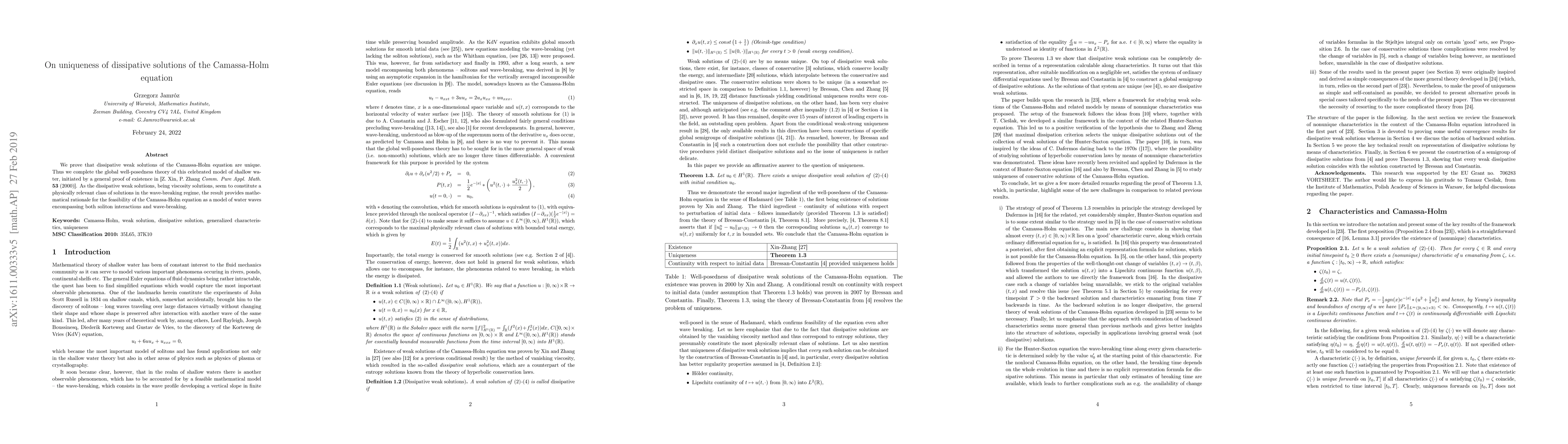 This paper proves the uniqueness of dissipative weak solutions to the Camassa-Holm equation, completing the global well-posedness theory for this model of shallow water. The findings provide mathematical support for the Camassa-Holm equation's use in simulating water waves, including wave-breaking and soliton interactions.