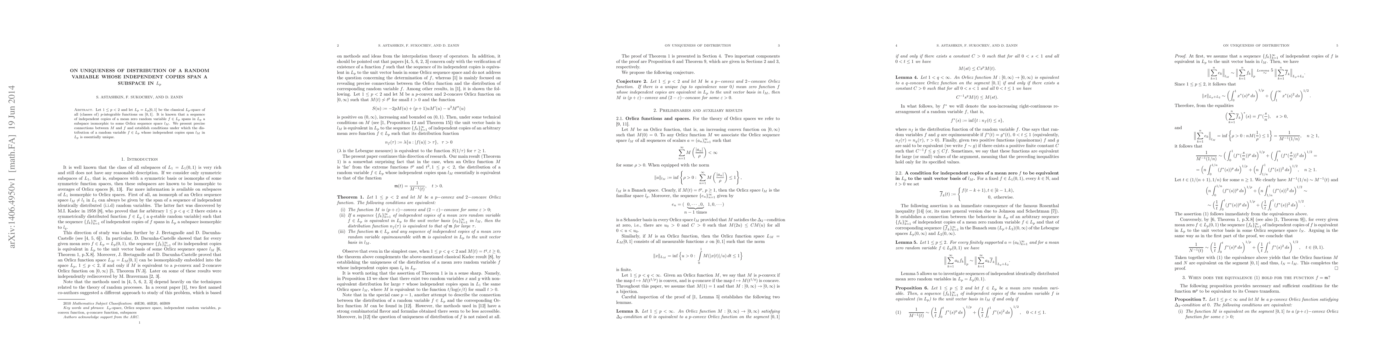 This research paper establishes conditions under which the distribution of a mean-zero random variable is uniquely determined when its independent copies span an Orlicz sequence space in L_p, for 1π p < 2.