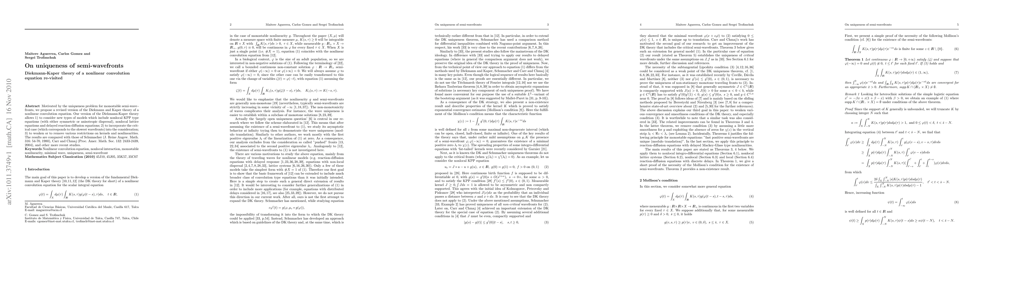 This paper revisits the Diekmann-Kaper theory for nonlinear convolution equations, proposing a revised version that extends its applicability to new models including nonlocal KPP equations and delayed reaction-diffusion equations. The new theory also incorporates the critical case and relaxes restrictions on kernels and nonlinearities, offering a more comprehensive approach to the uniqueness problem for monostable semi-wavefronts.