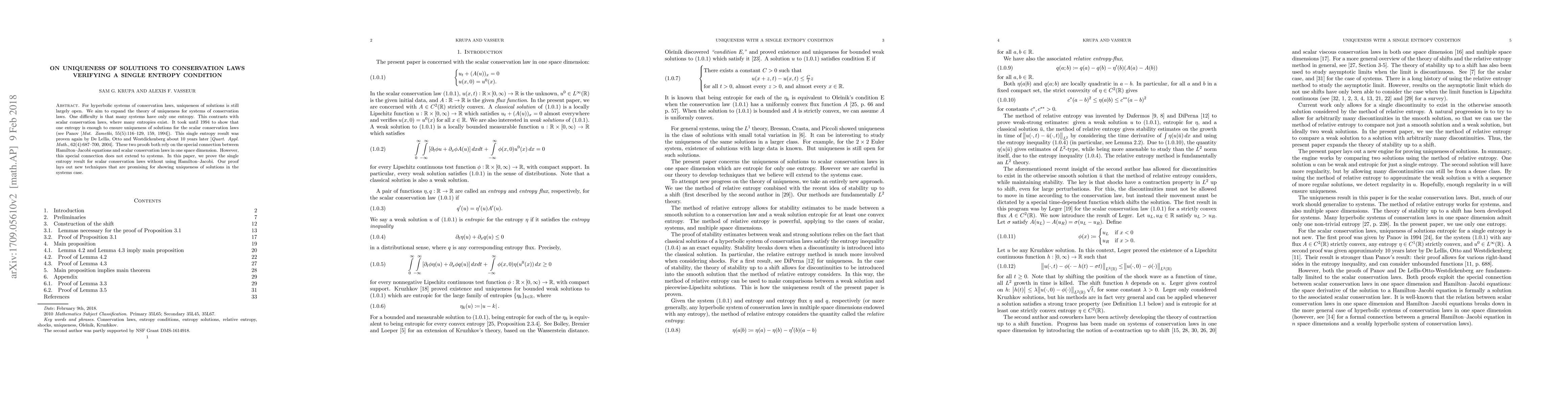 This paper explores the uniqueness of solutions for hyperbolic systems of conservation laws, focusing on the scenario where only a single entropy condition is available. It introduces new techniques to prove the uniqueness of scalar conservation laws using a single entropy, which may extend to systems of conservation laws.