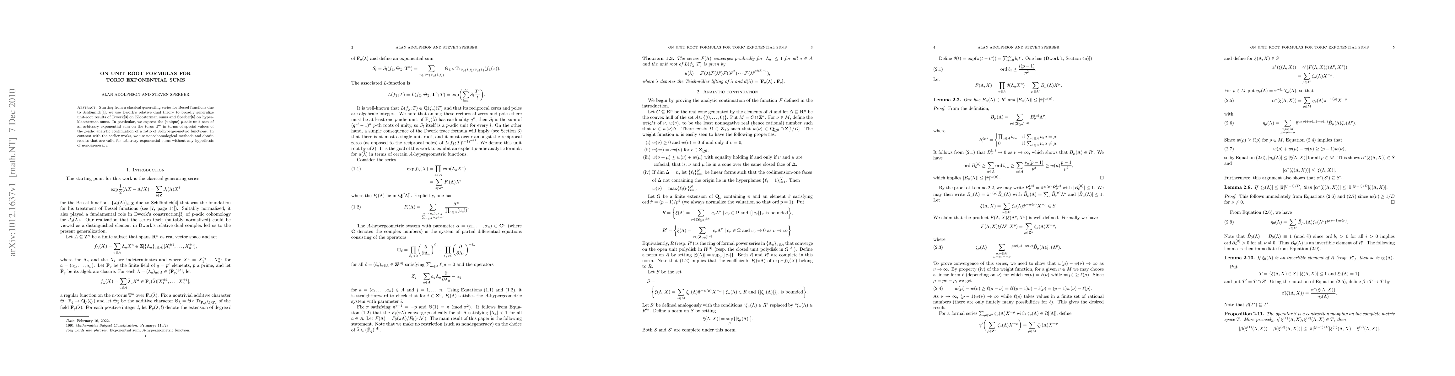 Starting from a classical generating series for Bessel functions due to Schlomilch, we use Dwork's relative dual theory to broadly generalize unit-root results of Dwork on Kloosterman sums and Sperber on hyperkloosterman sums. In particular, we express the (unique) p-adic unit root of an arbitrary exponential sum on the torus in terms of special values of the p-adic analytic continuation of a ratio of A-hypergeometric functions. In contrast with the earlier works, we use noncohomological methods and obtain results that are valid for arbitrary exponential sums without any hypothesis of nondegeneracy.