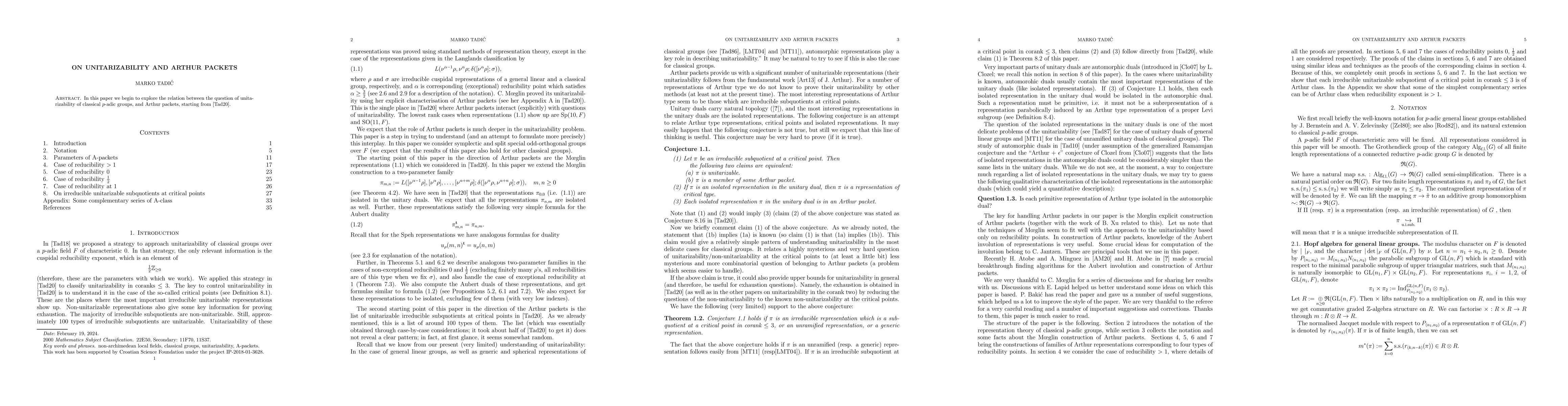This paper investigates the connection between the unitarizability of classical p-adic groups and the concept of Arthur packets, aiming to understand how unitarizable representations relate to these packets.