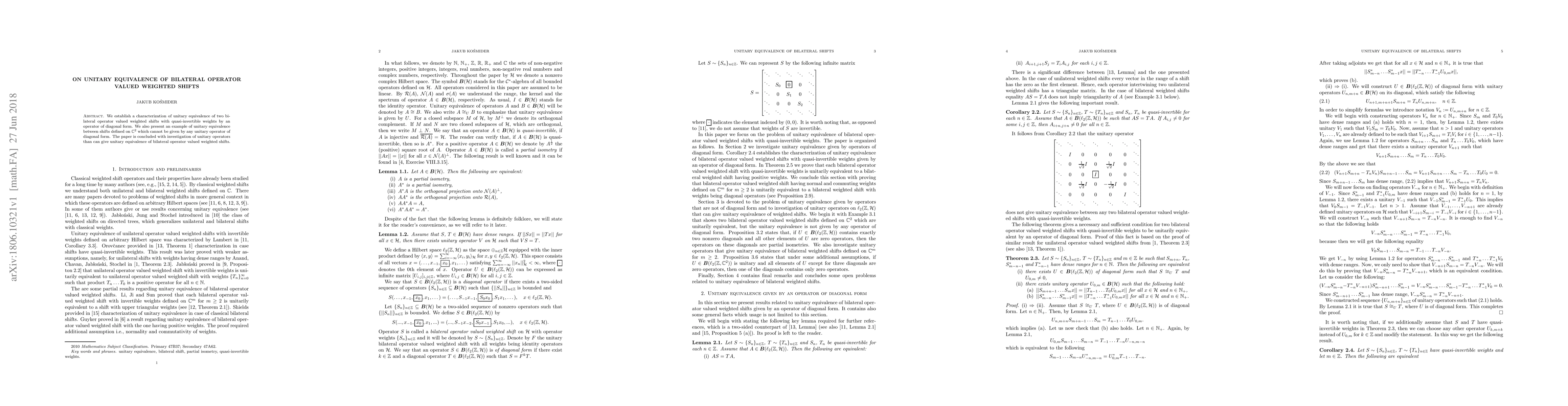 This paper characterizes unitary equivalence of two bilateral operator valued weighted shifts via diagonal operators and provides an example where such equivalence cannot be achieved by a diagonal unitary operator. It also explores unitary operators that can establish such equivalence.