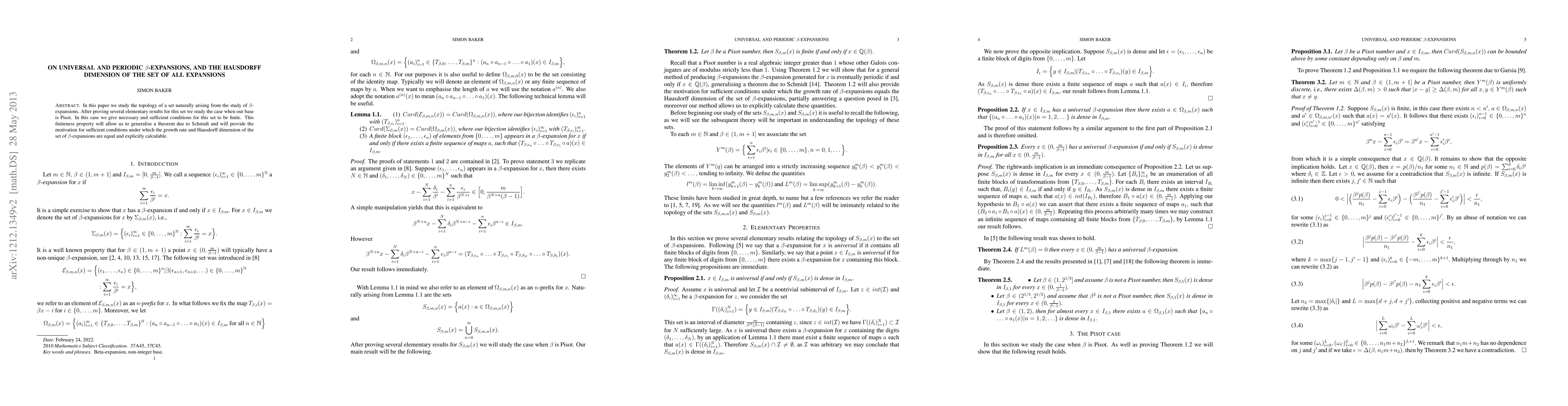 In this paper we study the topology of a set naturally arising from the study of $\beta$-expansions. After proving several elementary results for this set we study the case when our base is Pisot. In this case we give necessary and sufficient conditions for this set to be finite. This finiteness property will allow us to generalise a theorem due to Schmidt and will provide the motivation for sufficient conditions under which the growth rate and Hausdorff dimension of the set of $\beta$-expansions are equal and explicitly calculable.