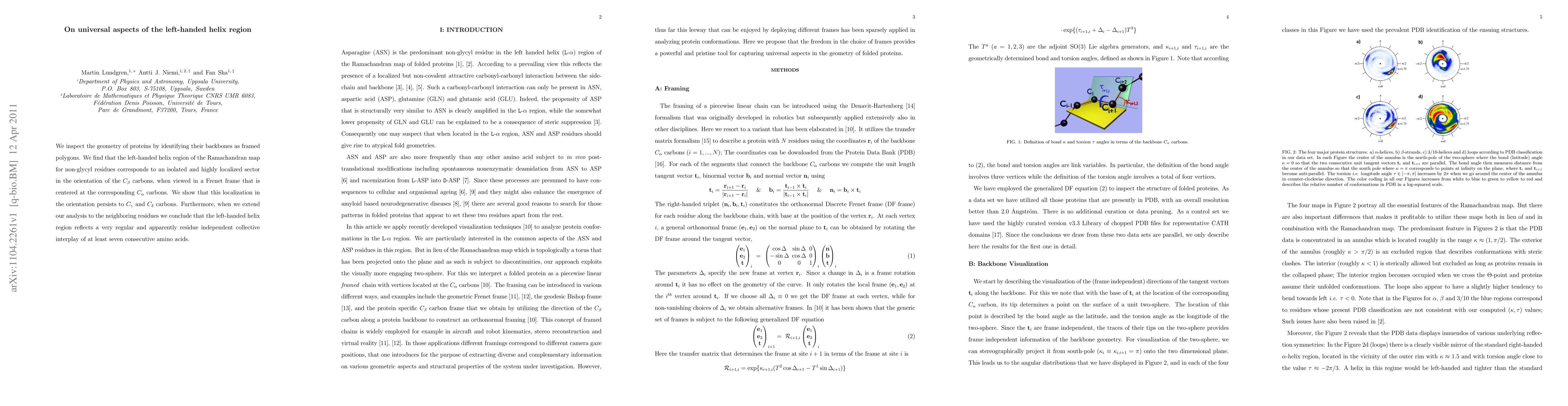We inspect the geometry of proteins by identifying their backbones as framed polygons. We find that the left-handed helix region of the Ramachandran map for non-glycyl residues corresponds to an isolated and highly localized sector in the orientation of the $C_\beta$ carbons, when viewed in a Frenet frame that is centered at the corresponding $C_\alpha$ carbons. We show that this localization in the orientation persists to $C_\gamma$ and $C_\delta$ carbons. Furthermore, when we extend our analysis to the neighboring residues we conclude that the left-handed helix region reflects a very regular and apparently residue independent collective interplay of at least seven consecutive amino acids.