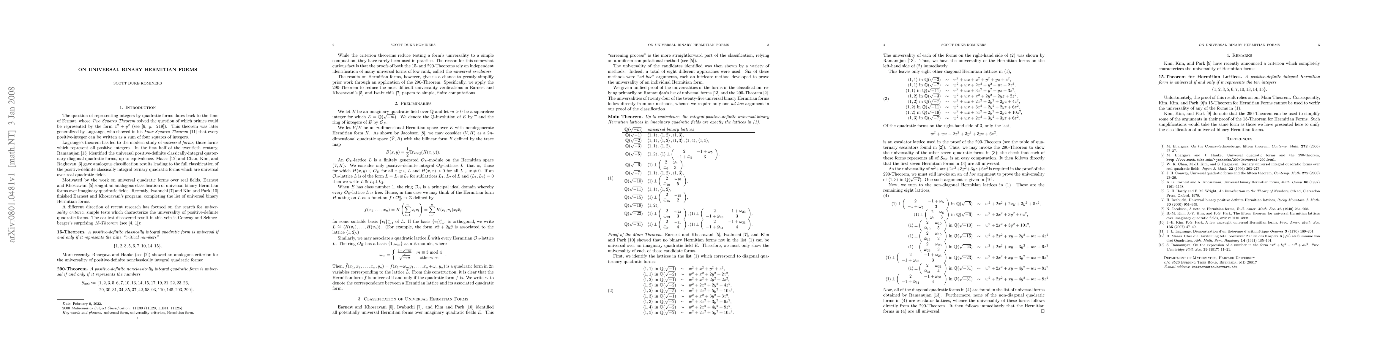 This paper provides a unified proof for the universalities of recently classified universal binary Hermitian forms, leveraging Ramanujan's list of universal quadratic forms and the Bhargava-Hanke 290-Theorem, thereby eliminating the need for ad hoc arguments used in previous classifications.