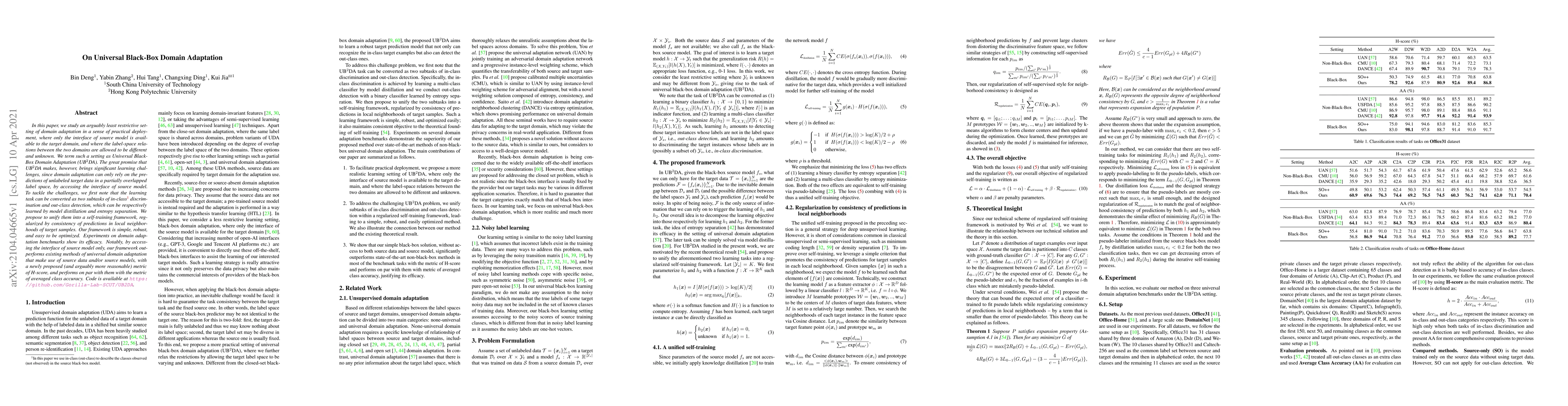 This paper proposes a new framework for Universal Black-Box Domain Adaptation that leverages self-training with model distillation and entropy separation to adapt models to new domains without labeled target data.