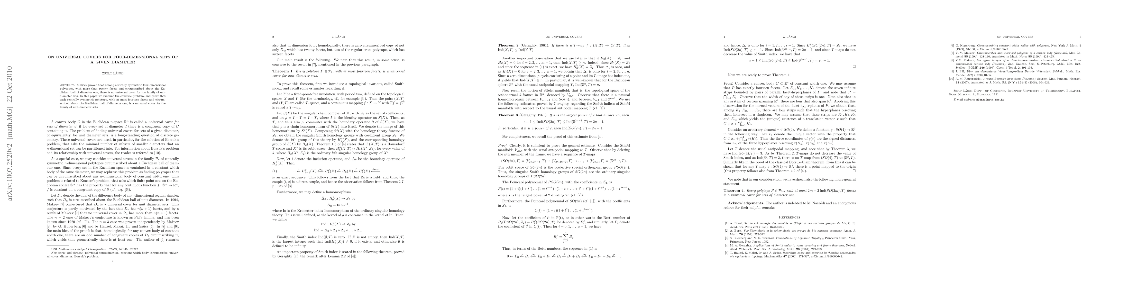 Researchers prove that centrally symmetric polytopes with 14 facets or less can cover unit diameter sets, resolving a converse problem to a previous finding, and provide insight into the structure of four-dimensional sets.