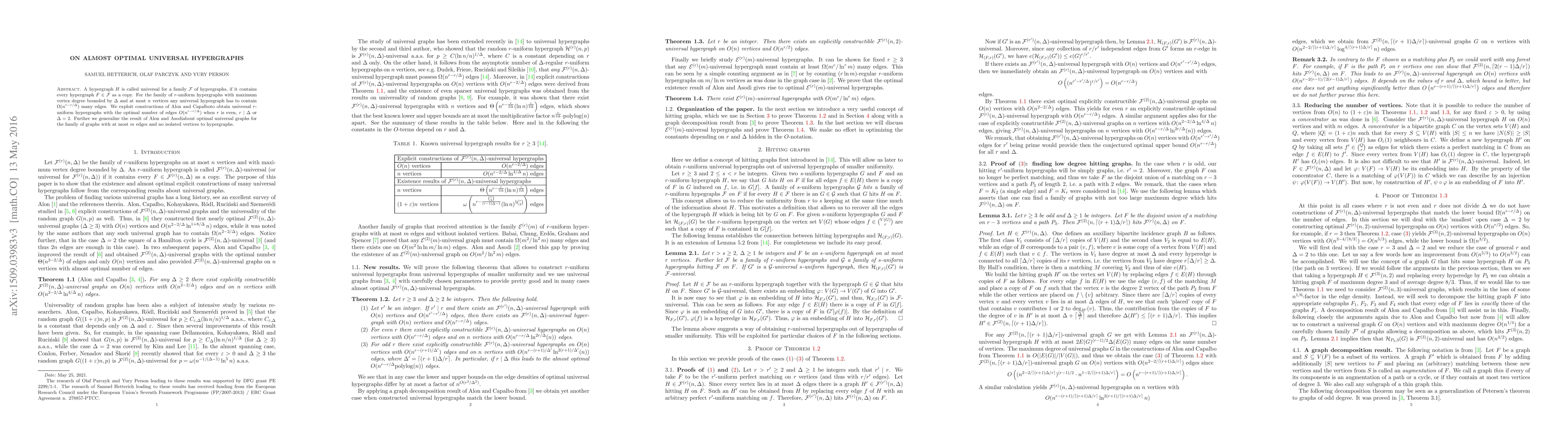 Researchers found that a universal hypergraph with at most $n$ vertices can contain $ extstyle O(n^{r-r/ ext{ extDelta}})$ edges for a specific family of hypergraphs, improving upon previous estimates.
