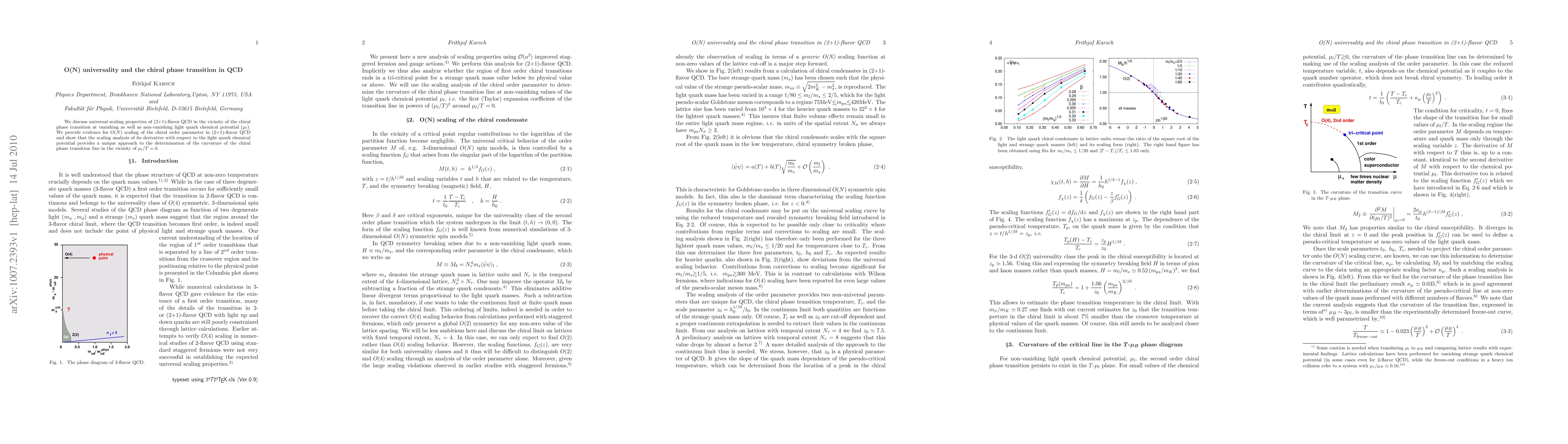 We discuss universal scaling properties of (2+1)-flavor QCD in the vicinity of the chiral phase transition at vanishing as well as non-vanishing light quark chemical potential (mu_l). We provide evidence for O(N) scaling of the chiral order parameter in (2+1)-flavor QCD and show that the scaling analysis of its derivative with respect to the light quark chemical potential provides a unique approach to the determination of the curvature of the chiral phase transition line in the vicinity of mu_l/T=0.