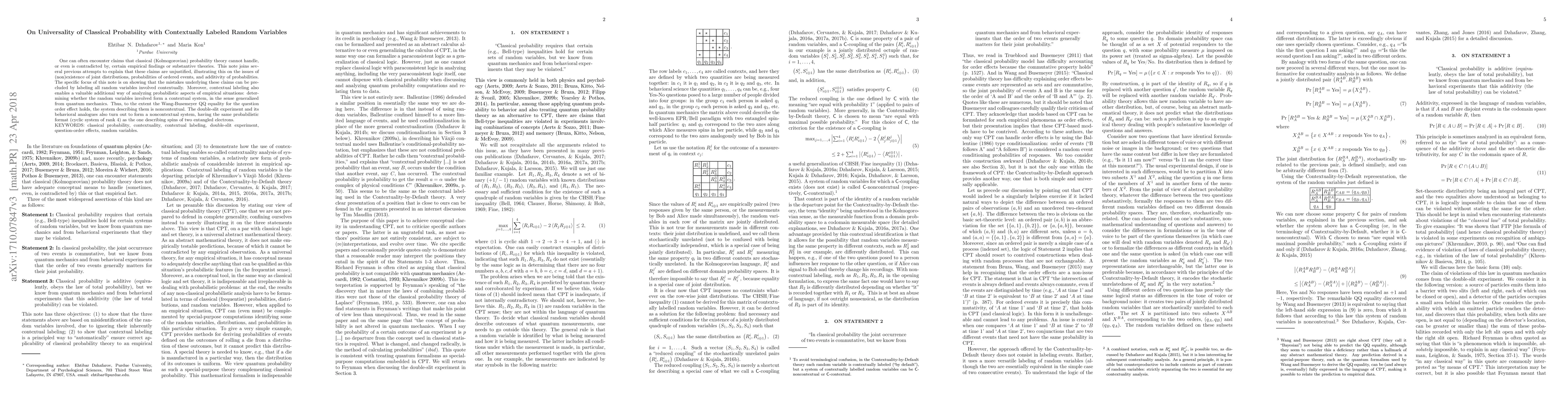 This paper argues that classical probability theory can accommodate empirical findings previously thought to contradict it, by contextually labeling all involved random variables. It demonstrates that contextual labeling resolves issues like joint distributions and additivity, and introduces a method to determine if a system of random variables is noncontextual, as seen in the double-slit experiment and the Wang-Busemeyer QQ equality.