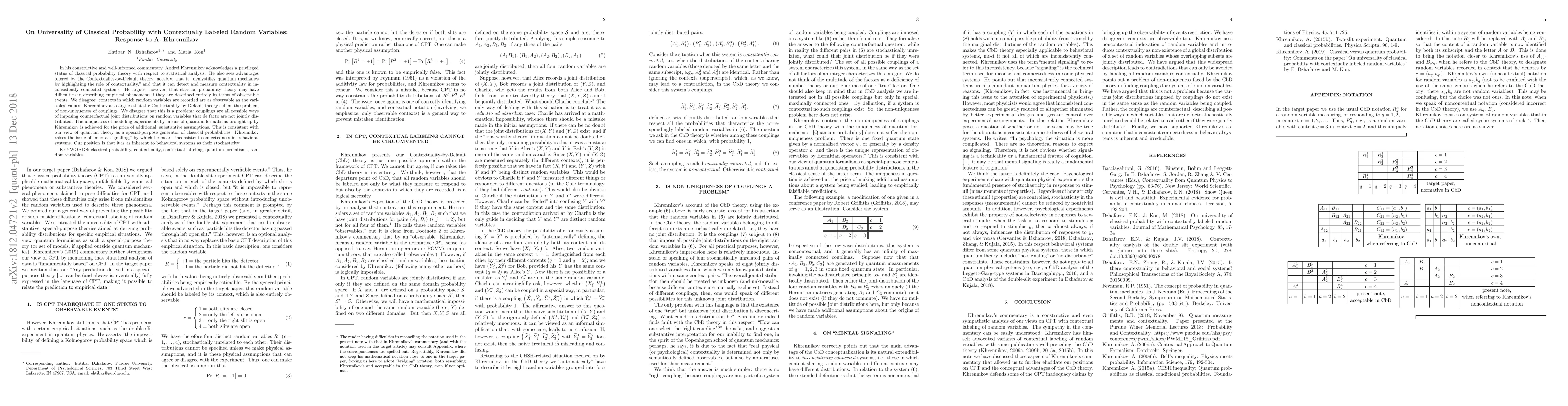 In his constructive and well-informed commentary, Andrei Khrennikov acknowledges a privileged status of classical probability theory with respect to statistical analysis. He also sees advantages offered by the Contextuality-by-Default theory, notably, that it `demystifies quantum mechanics by highlighting the role of contextuality,' and that it can detect and measure contextuality in inconsistently connected systems. He argues, however, that classical probability theory may have difficulties in describing empirical phenomena if they are described entirely in terms of observable events. We disagree: contexts in which random variables are recorded are as observable as the variables' values. Khrennikov also argues that the Contextuality-by-Default theory suffers the problem of non-uniqueness of couplings. We disagree that this is a problem: couplings are all possible ways of imposing counterfactual joint distributions on random variables that de facto are not jointly distributed. The uniqueness of modeling experiments by means of quantum formalisms brought up by Khrennikov is achieved for the price of additional, substantive assumptions. This is consistent with our view of quantum theory as a special-purpose generator of classical probabilities. Khrennikov raises the issue of `mental signaling,' by which he means inconsistent connectedness in behavioral systems. Our position is that it is as inherent to behavioral systems as their stochasticity.