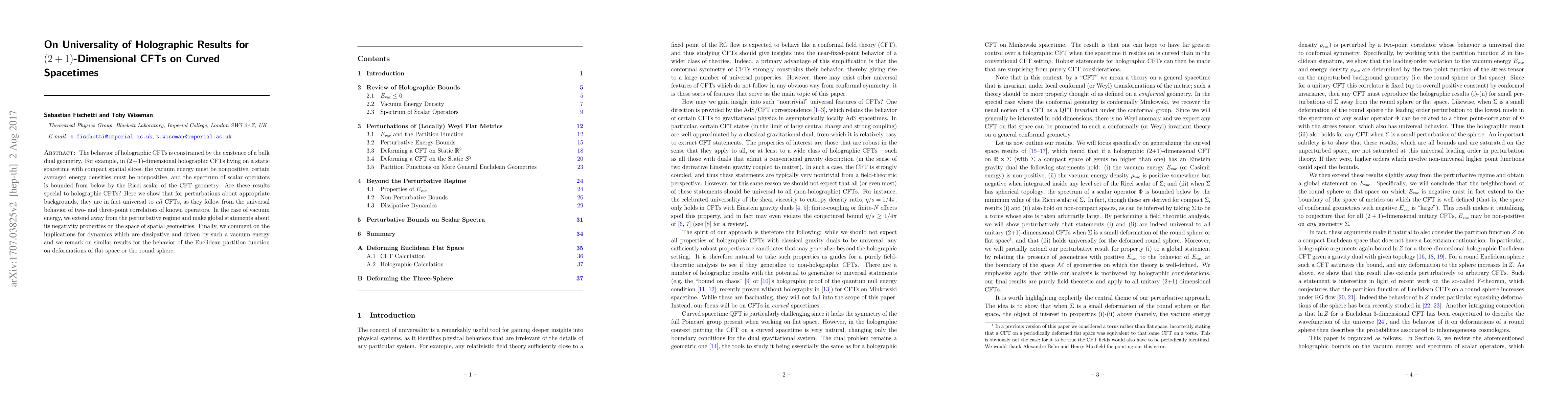 The behavior of holographic CFTs is constrained by the existence of a bulk dual geometry. For example, in (2+1)-dimensional holographic CFTs living on a static spacetime with compact spatial slices, the vacuum energy must be nonpositive, certain averaged energy densities must be nonpositive, and the spectrum of scalar operators is bounded from below by the Ricci scalar of the CFT geometry. Are these results special to holographic CFTs? Here we show that for perturbations about appropriate backgrounds, they are in fact universal to all CFTs, as they follow from the universal behavior of two- and three-point correlators of known operators. In the case of vacuum energy, we extend away from the perturbative regime and make global statements about its negativity properties on the space of spatial geometries. Finally, we comment on the implications for dynamics which are dissipative and driven by such a vacuum energy and we remark on similar results for the behavior of the Euclidean partition function on deformations of flat space or the round sphere.