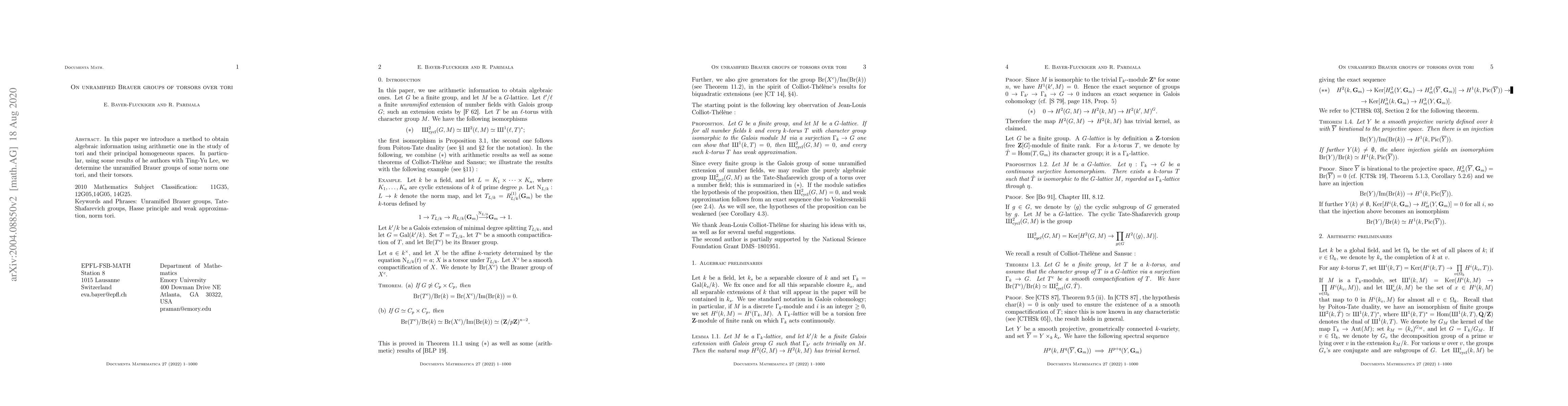 Summary: This paper introduces a method to study algebraic information through arithmetic means in the context of tori and their homogeneous spaces. The authors determine the unramified Brauer groups of certain norm one tori and their associated torsors using collaborative results.