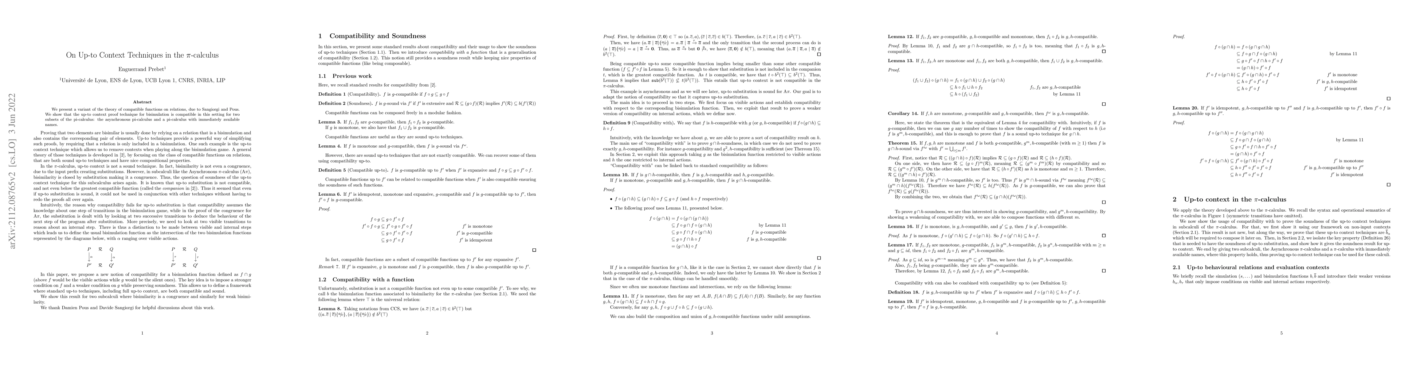 We present a variant of the theory of compatible functions on relations, due to Sangiorgi and Pous. We show that the up-to context proof technique for bisimulation is compatible in this setting for two subsets of the pi-calculus: the asynchronous pi-calculus and a pi-calculus with immediately available names.