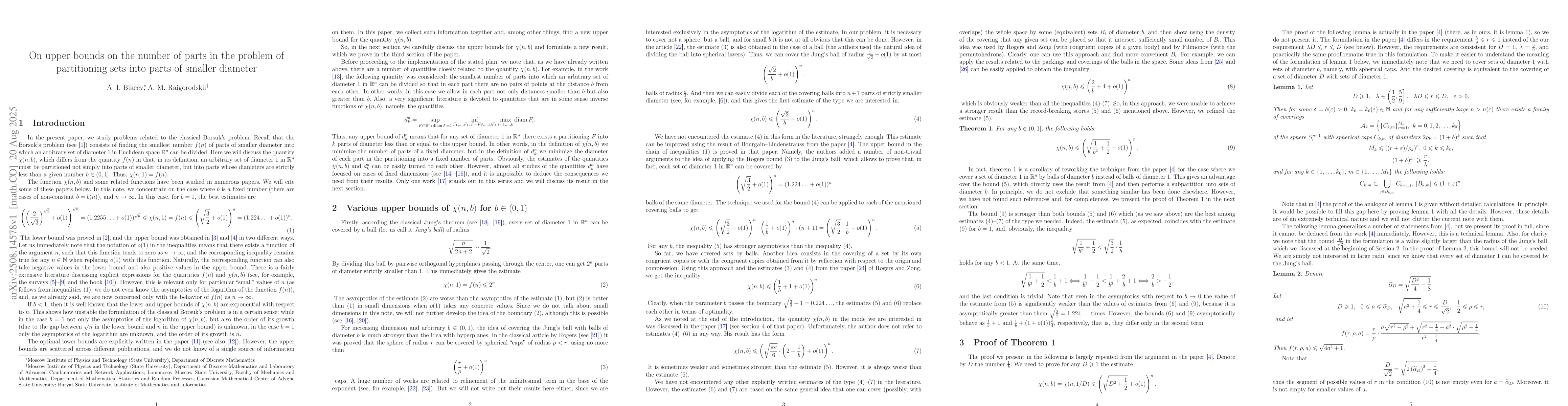 The work introduces a new upper bound for χ(n, b) that surpasses existing bounds, providing a significant advancement in the study of partitioning problems in Euclidean spaces.