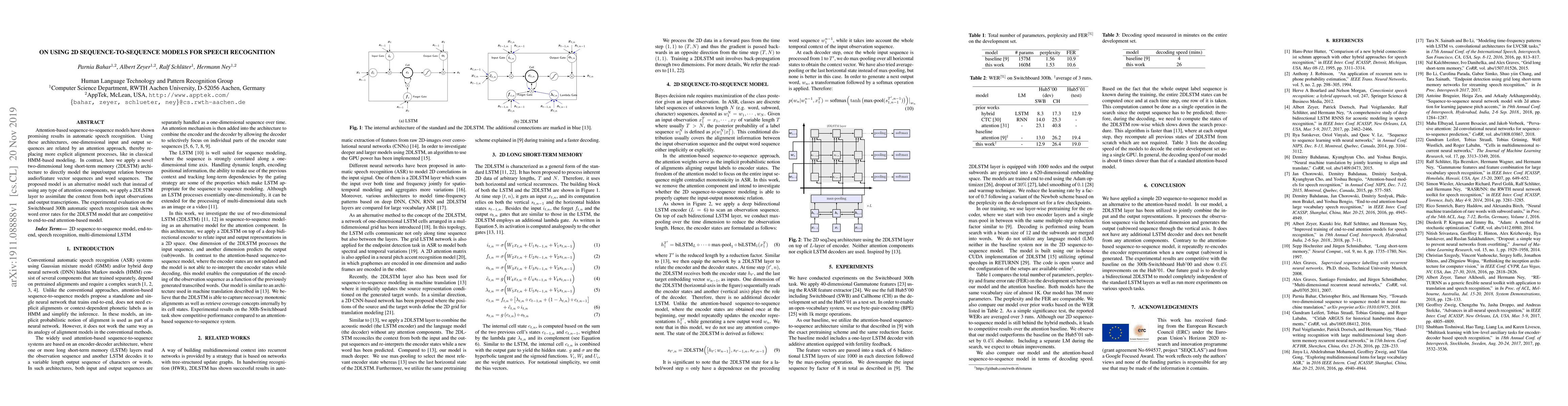 This paper proposes a 2DLSTM architecture for speech recognition that directly models the relationship between audio and transcription sequences without attention mechanisms, achieving competitive word error rates compared to attention-based models in the Switchboard 300h task.
