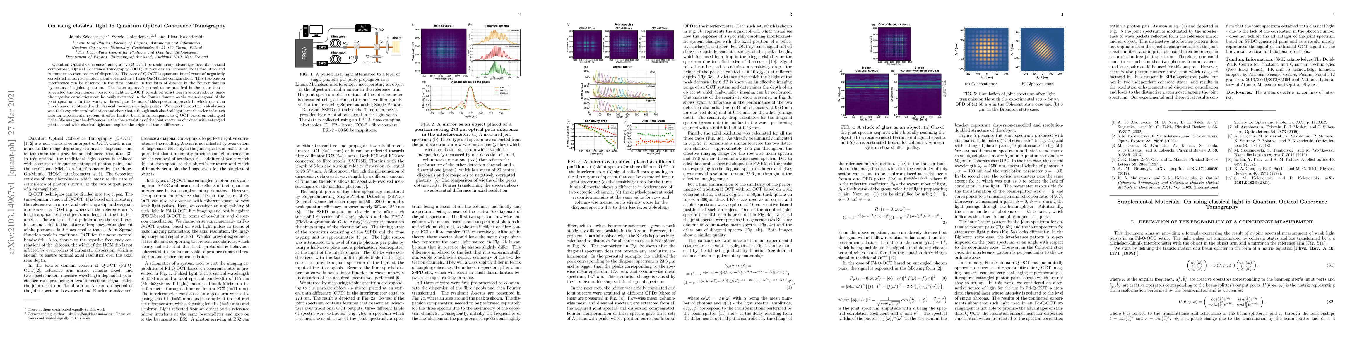 This paper explores the use of classical light in Quantum Optical Coherence Tomography (Q-OCT), demonstrating that while classical light is easier to implement, it provides limited benefits compared to Q-OCT using entangled photons. The study highlights differences in joint spectrum characteristics between classical and entangled light.