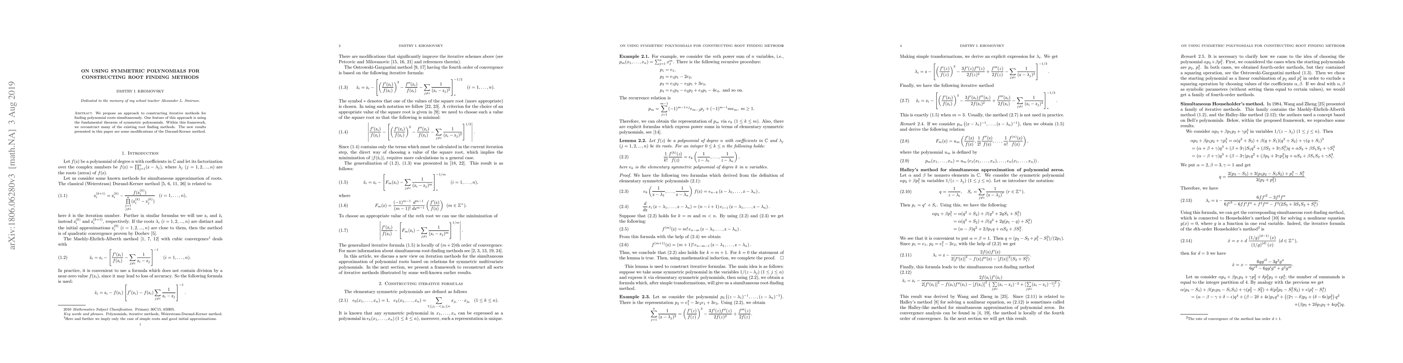 We propose an approach to constructing iterative methods for finding polynomial roots simultaneously. One feature of this approach is using the fundamental theorem of symmetric polynomials. Within this framework, we reconstruct many of the existing root finding methods. The new results presented in this paper are some modifications of the Durand-Kerner method.