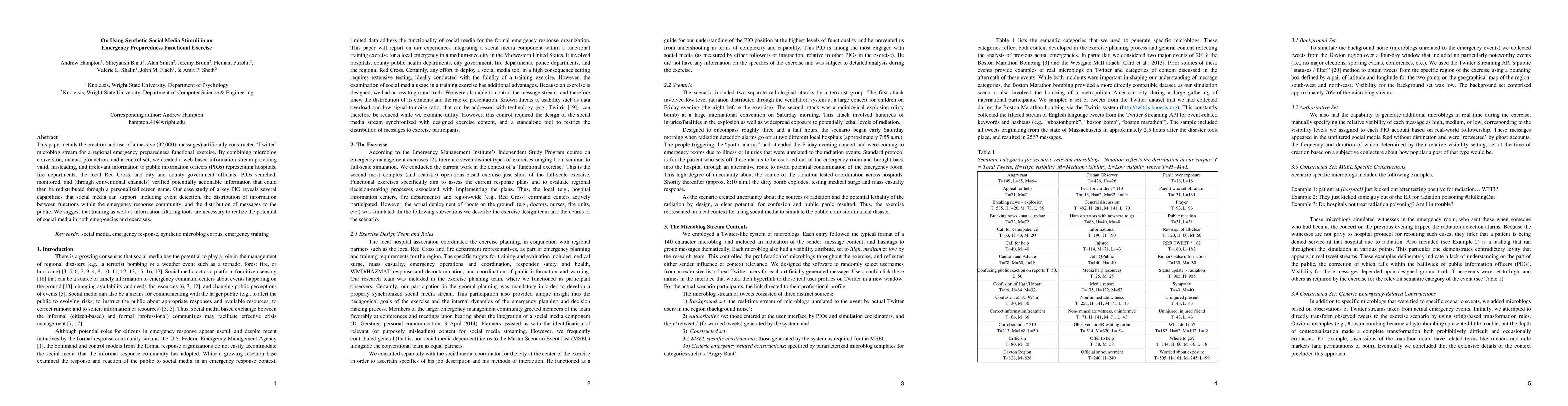 This paper explores the use of a synthetic Twitter microblog stream with over 32,000 messages in an emergency preparedness exercise, highlighting social media's role in event detection and information distribution among emergency responders. It concludes that training and information filtering tools are essential for leveraging social media in emergency situations.