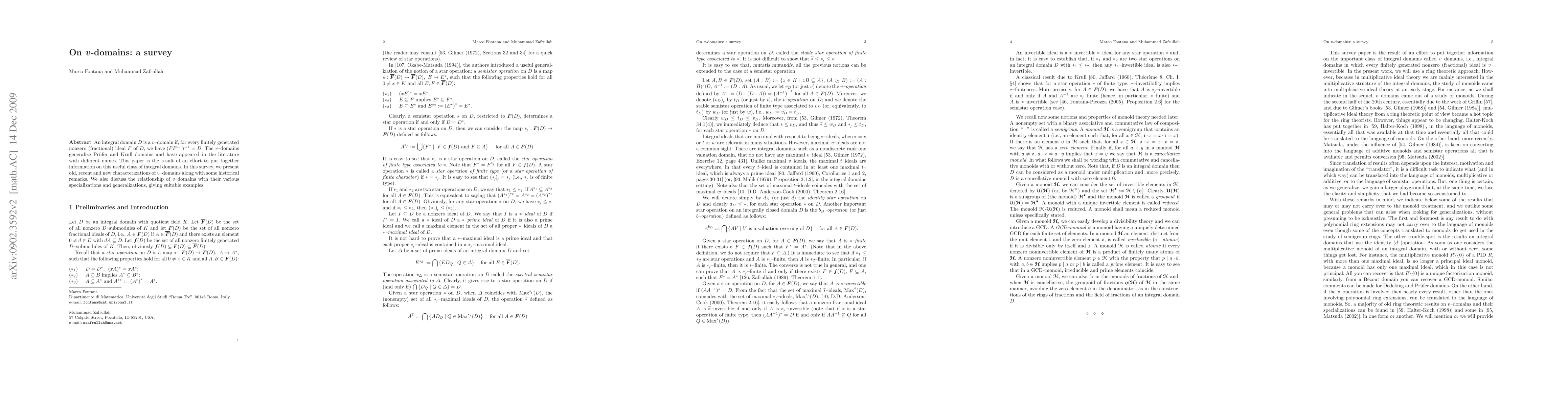 An integral domain $D$ is a $v$--domain if, for every finitely generated nonzero (fractional) ideal $F$ of $D$, we have $(FF^{-1})^{-1}=D$. The $v$--domains generalize Pr\"{u}fer and Krull domains and have appeared in the literature with different names. This paper is the result of an effort to put together information on this useful class of integral domains. In this survey, we present old, recent and new characterizations of $v$--domains along with some historical remarks. We also discuss the relationship of $v$--domains with their various specializations and generalizations, giving suitable examples.