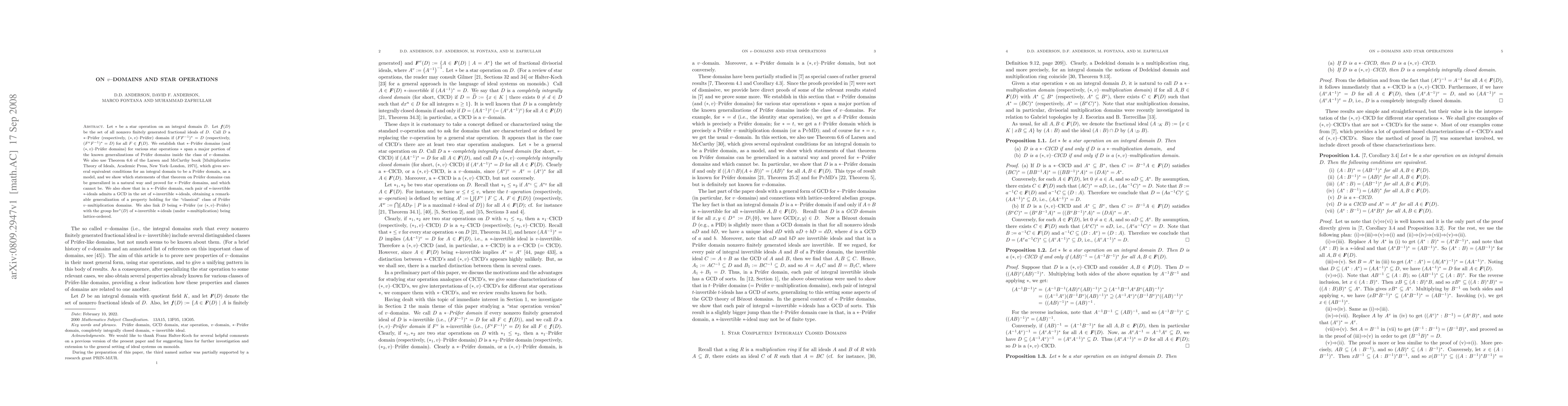Let $\ast$ be a star operation on an integral domain $D$. Let $\f(D)$ be the set of all nonzero finitely generated fractional ideals of $D$. Call $D$ a $\ast$--Pr\"ufer (respectively, $(\ast, v)$--Pr\"ufer) domain if $(FF^{-1})^{\ast}=D$ (respectively, $(F^vF^{-1})^{\ast}=D$) for all $F\in \f(D)$. We establish that $\ast$--Pr\"ufer domains (and $(\ast, v)$--Pr\"ufer domains) for various star operations $\ast $ span a major portion of the known generalizations of Pr\"{u}fer domains inside the class of $v$--domains. We also use Theorem 6.6 of the Larsen and McCarthy book [Multiplicative Theory of Ideals, Academic Press, New York--London, 1971], which gives several equivalent conditions for an integral domain to be a Pr\"ufer domain, as a model, and we show which statements of that theorem on Pr\"ufer domains can be generalized in a natural way and proved for $\ast$--Pr\"ufer domains, and which cannot be. We also show that in a $\ast $--Pr\"ufer domain, each pair of $\ast $-invertible $\ast $-ideals admits a GCD in the set of $\ast $-invertible $\ast $-ideals, obtaining a remarkable generalization of a property holding for the "classical" class of Pr\"ufer $v$--multiplication domains. We also link $D$ being $\ast $--Pr\"ufer (or $(\ast, v)$--Pr\"ufer) with the group Inv$^{\ast}(D)$ of $\ast $-invertible $\ast $-ideals (under $\ast$-multiplication) being lattice-ordered.